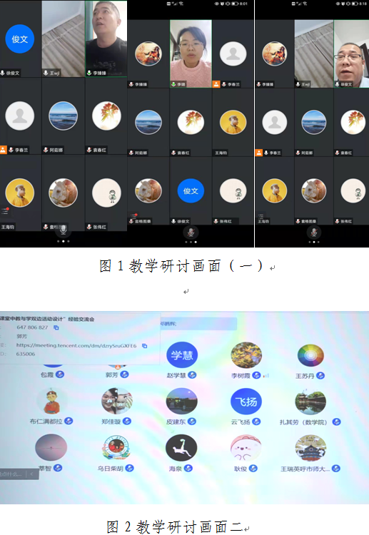 公司经理扎其劳教授、党委副书记李联和教授、教学副经理包霞副教授全程参与,在分享自己的教学经验的同时对本次教研活动进行总结发言,充分肯定本次活动的意义与效果,并鼓励即使恢复线下教学,也可以经常性开展线上教学研讨,善于挖掘身边优秀案例,同时发挥老教师的“传、帮、带”作用。