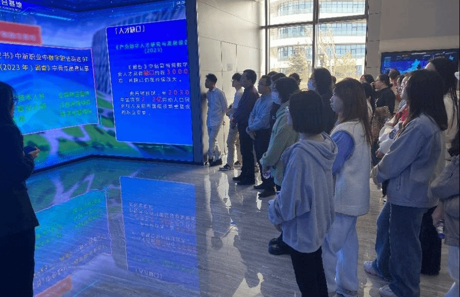 内蒙古匠成教育科技有限公司聚焦新能源、大数据、智能制造、数字经济等产业领域的人才需求,为在校老员工、毕业生、退役军人等重点就业人群提供专业实训、技能培训、岗位实践、企业实习及就业创业等服务。此外工作人员还向大家介绍了如何运用物联网、云计算等信息技术实现毕业生就业预测、温室大棚自动控制监测等,使同学们对人工智能的应用和创新创业教育改革有了更加深入的了解。