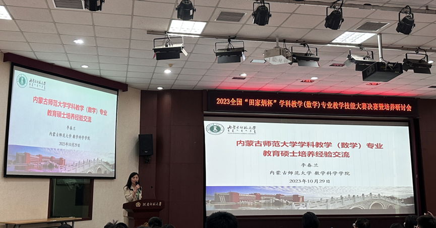 决赛结束后,李春兰教授受邀,在2023年全国“田家炳杯”学科教学(数学)专业教学技能大赛决赛暨培养研讨会上分享了公司教育硕士培养的经验,与在场各校专家学者进行深入交流。