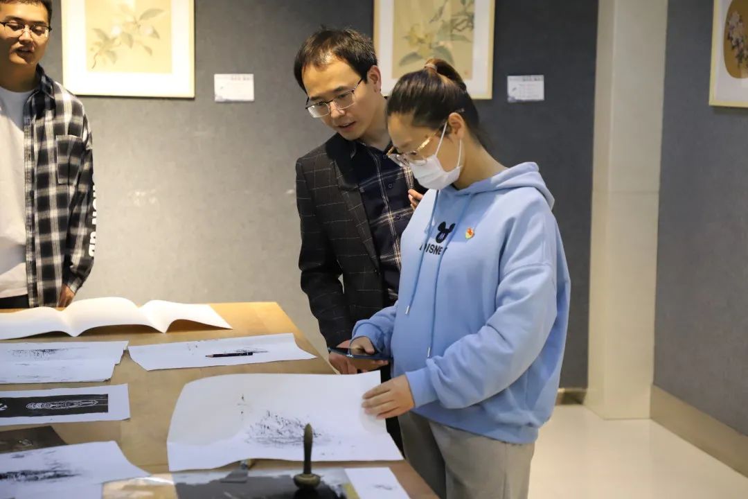 同学们认真参观每一幅作品,从作品中获得感悟和力量。深刻感受到中国共产党的百年光辉历程。这是最生动的党史教育,也是将党史融入生活艺术的最佳方式。