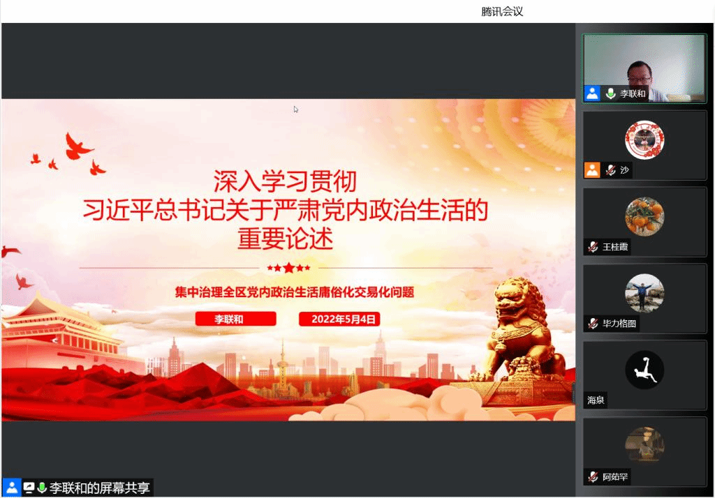 2022年5月4日,PA电竞召开会议传达学习《关于集中治理全区党内政治生活庸俗化交易化问题的工作安排》,通报了党内政治生活庸俗化交易化问题清单。40名教师党员集体学习了习近平总书记关于严肃党内政治生活的重要论述。公司党委副书记李联和主持会议。