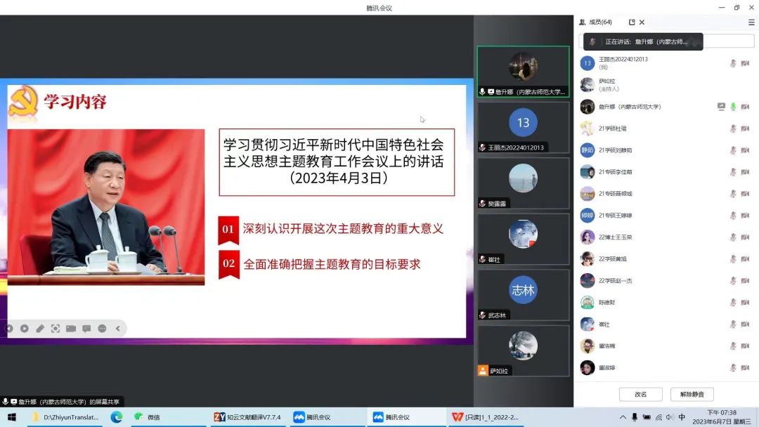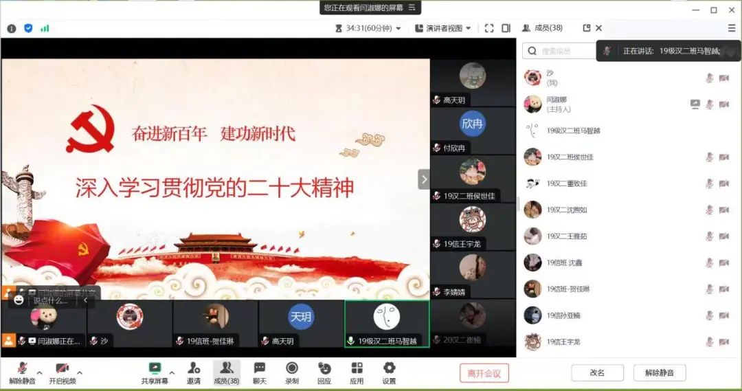 PA电竞研究生党支部线上线下结合召开党支部大会。会上研究讨论了预备党员转正事宜。同时由20级学硕詹升娜同学带领学习,提出了要深刻把握主题教育的重大意义以及目标要求,对学习贯彻习近平新时代中国特色社会主义思想主题教育工作会议上的讲话进行了集体学习。