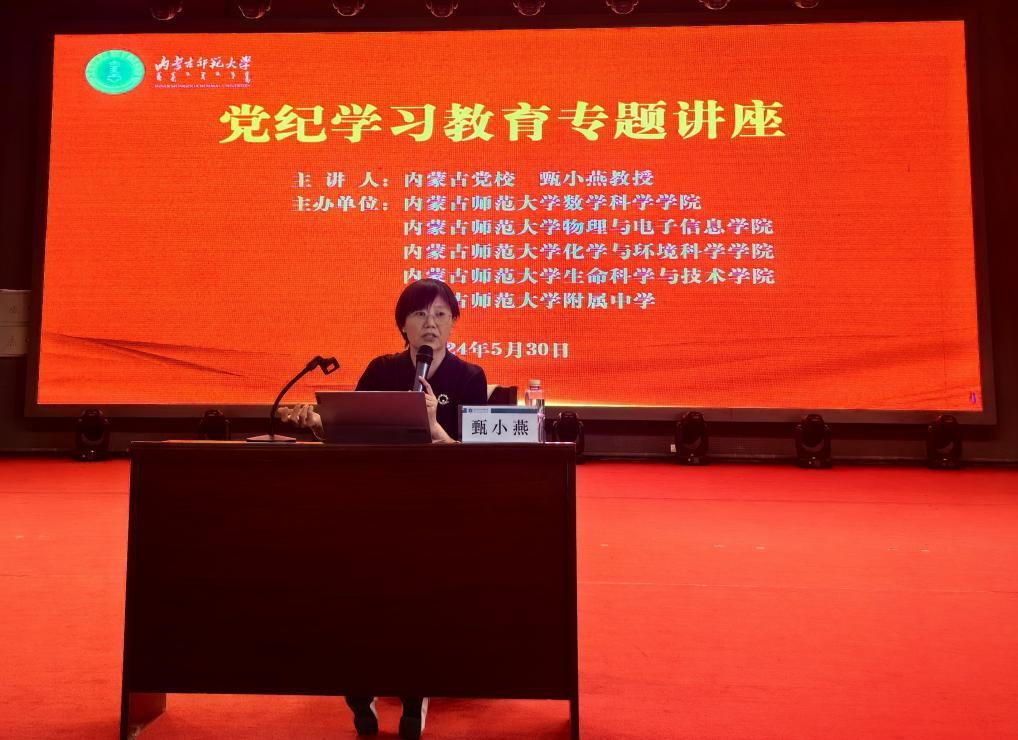 为深入学习贯彻习近平总书记关于全面加强党的纪律建设的重要论述和关于党纪学习教育的重要讲话重要指示精神,认真学习领会新修订的《中国共产党纪律处分条例》,进一步加强公司师生党员的党性修养与政治素质,5月30日下午,公司联合物理与电子信息公司、化学与环境科学公司、生命科学与技术公司和附属中学在附属中学共同举办了党纪学习教育专题讲座。讲座特邀内蒙古党公司党史党建教研部甄小燕教授作题为“深入学习贯彻《中国共产党纪律处分条例》”的专题辅导报告,公司全体教工党员和部分员工党员参加学习。