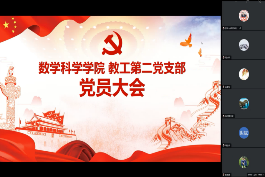 pa电子PA电竞教工第二党支部于2024年12月30日召开党员大会,会议围绕三项重要议题展开深入讨论。会议由支部书记主持,全体党员出席,会议通过腾讯会议的形式在线上进行。