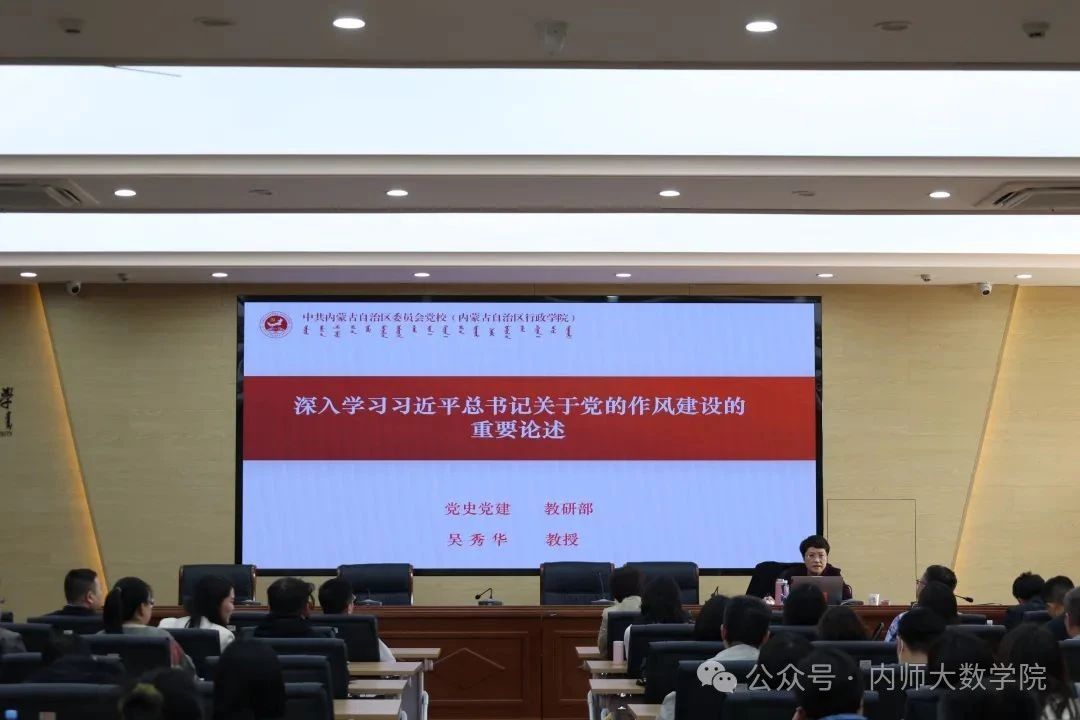 为深入贯彻落实党中央、自治区党委、公司党委深入贯彻中央八项规定精神学习教育精神和要求,高质量开展学习教育活动,4月10日,公司联合化学与环境科学公司、物理与电子信息公司、生命科学与技术公司和未来科学与技术公司在赛罕校区行政楼三楼报告厅举办深入贯彻中央八项规定精神学习教育读书班专题讲座。讲座邀请内蒙古党公司党史党建教研部吴秀华教授作题为“深入学习习近平总书记关于党的作风建设的重要论述”专题讲座。