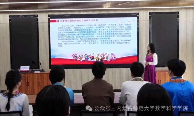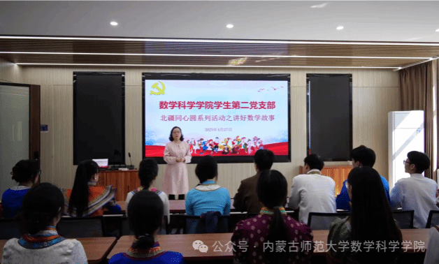 支部书记刘沙沙老师和三位员工党员胡佳莹、祁浩轩、张帅华以生动的语言将数学家明安图、苏步青、阿拉坦仓的数学故事娓娓道来,台下师生听得入神,民族自豪感与爱国情怀在每个人心中激荡。