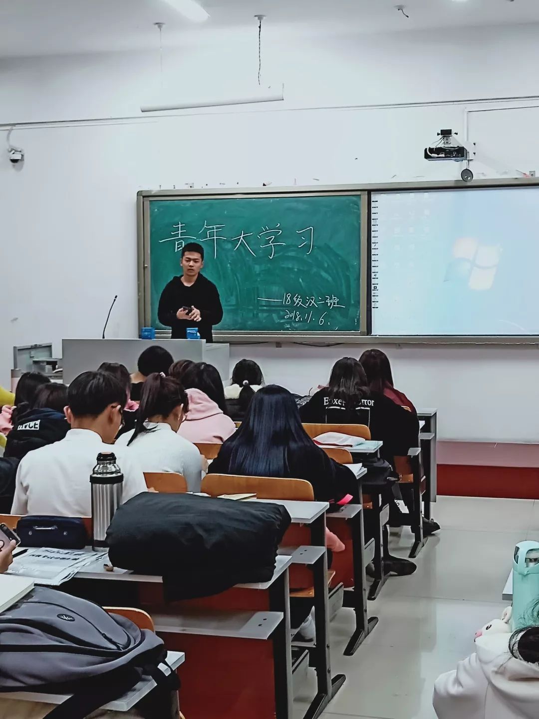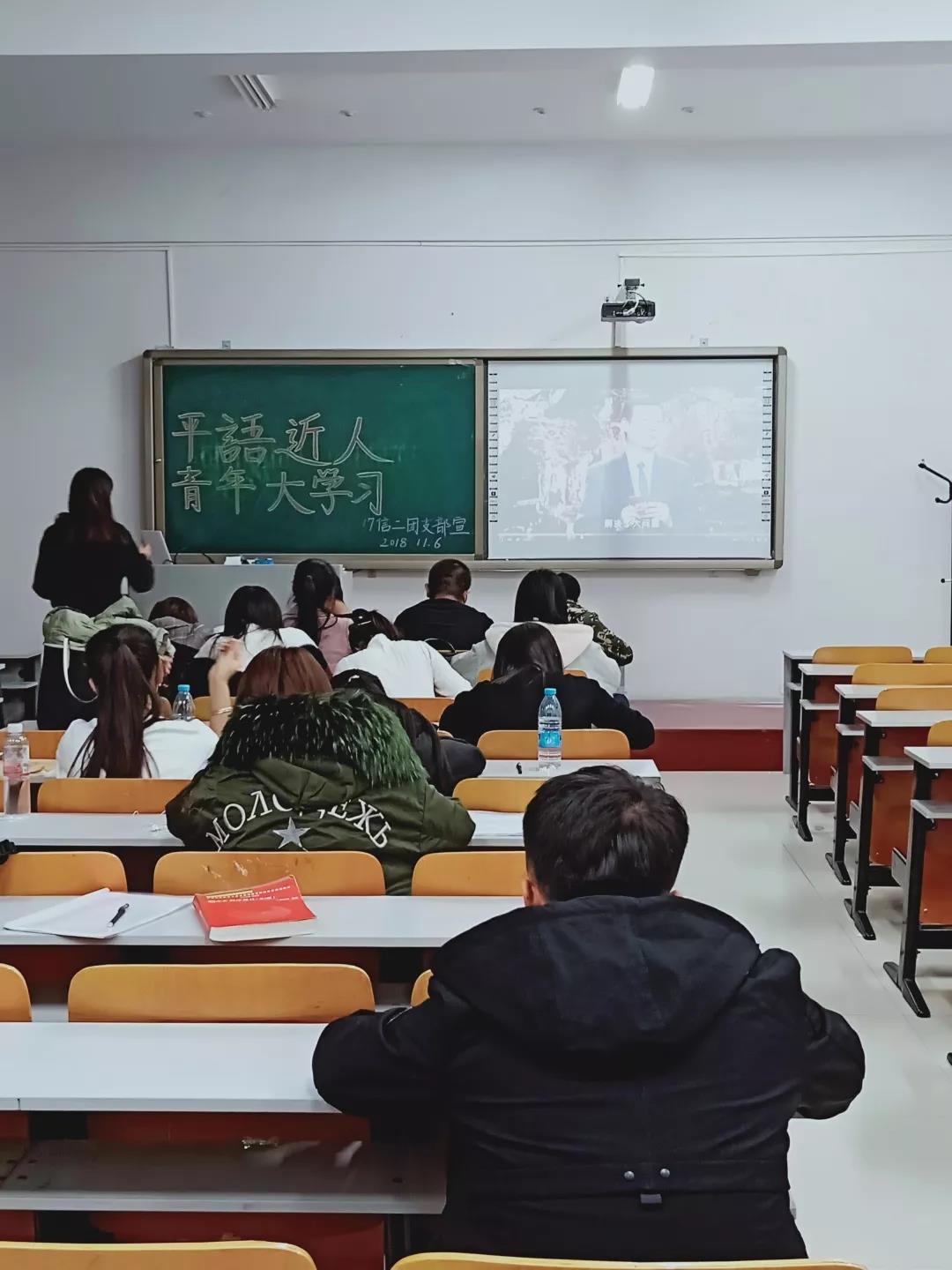 2018年11月6日19:30,PA电竞各团支部于科技楼开展“青年大学习”交流会,组织支部成员观看《平“语”近人》。