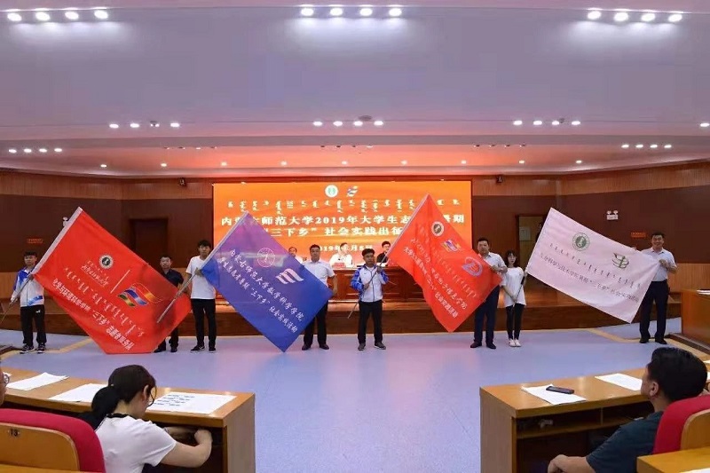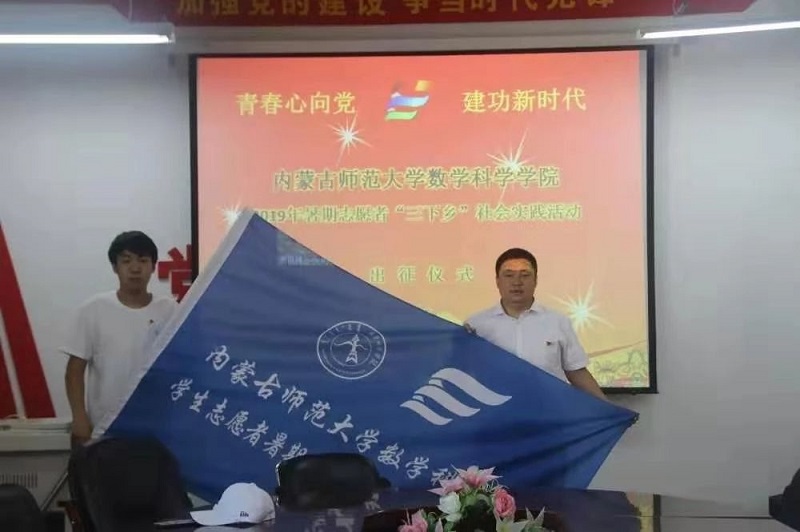 皮建东老师为大家详细介绍了本次实践活动所到地点、环境及活动目的。季建光老师,李帅老师也分别强调了此次“三下乡”的安全问题及各种注意事项,并举行了授旗仪式。