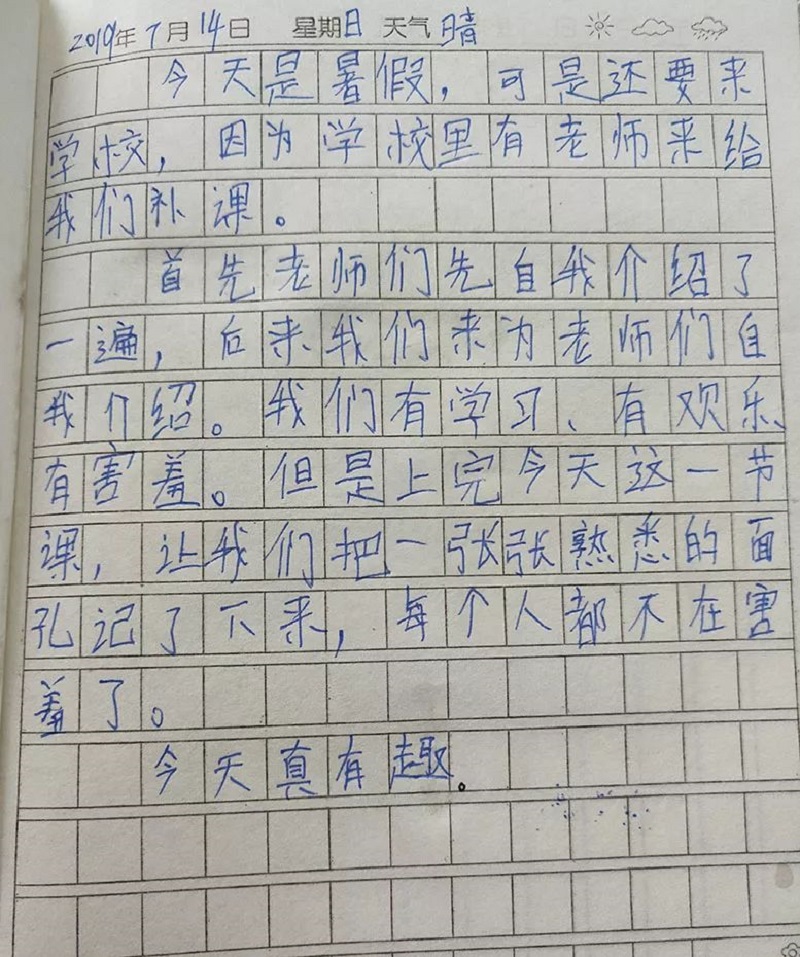 次日,简单的早饭过后,便投入到迎接员工,收集信息的工作当中。我们来这里,也是要锻炼自己,服务社会,孩子们的学业也会有所提升,所以无论是我们还是家长们都格外重视此次课外辅导机会。发挥我们的专业特长与个人积累使小员工有所提高是我们每个人努力的目标。