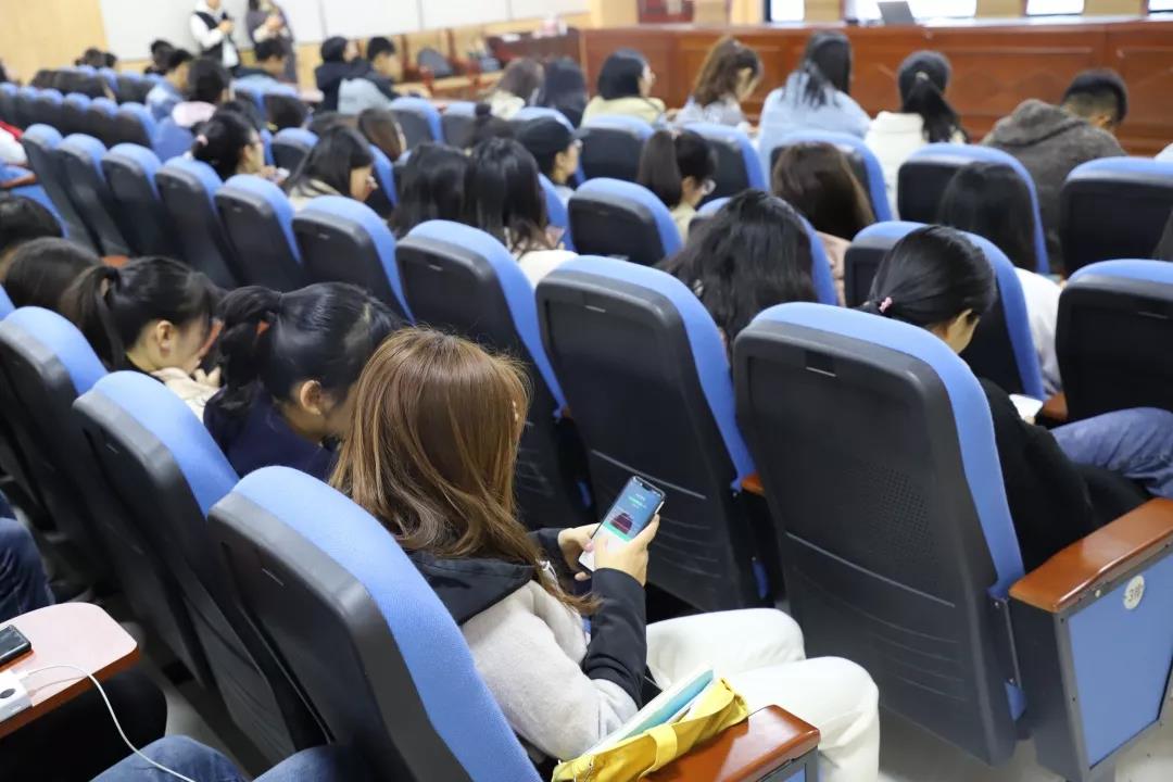 宣讲中冀永芳同学提到国家对志愿服务的重视,并向同学们介绍了“志愿汇”APP的注册流程及部分功能、2018年“志愿汇”相关统计数据、pa电子志愿者服务总队开展的部分活动。