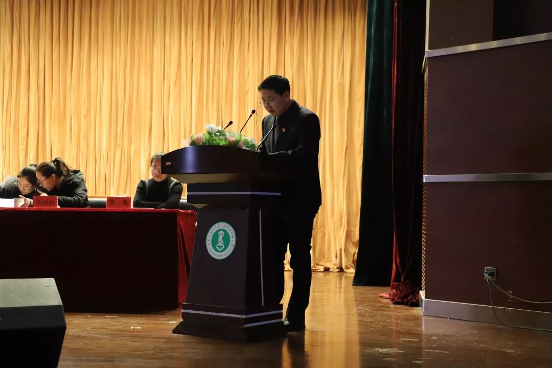 2019年12月22日下午,2019-2020学年度第一学期员工工作总结暨期末考试动员大会于公司楼报告厅举行。出席本次大会的领导和老师有:公司党委书记扎其劳教授,公司经理刘官厅教授,公司党委副书记、副经理季建光老师,公司副经理李联和教授,公司副经理包霞副教授,公司团总支书记兼19级汉一班班主任皮建东老师,18级统计班班主任徐俊文老师,18级汉一班班主任耿俊老师,19级汉二班班主任王海钧老师,公司教学秘书兼19级蒙班班主任阿如罕老师,公司辅导员兼18级信息二班班主任李帅老师,公司辅导员兼18级信息三班班主任刘沙沙老师。