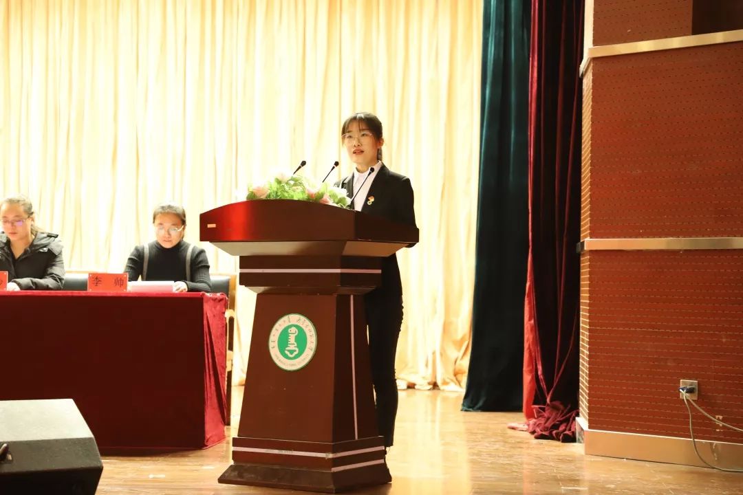 优秀学子代表17级信息一班贾梦姝同学发言。