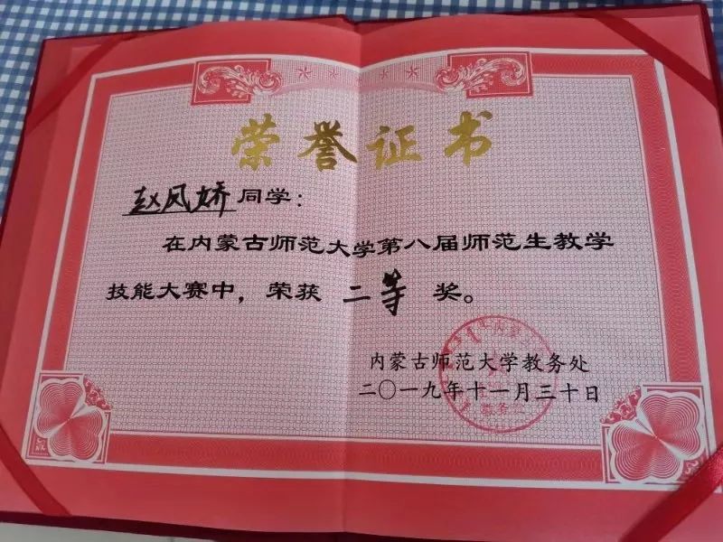 16级数学与应用数学汉班员工,2019年荣获内蒙古自治区第四届师范生教学技能大赛数学与应用数学(汉语)组优秀奖。
