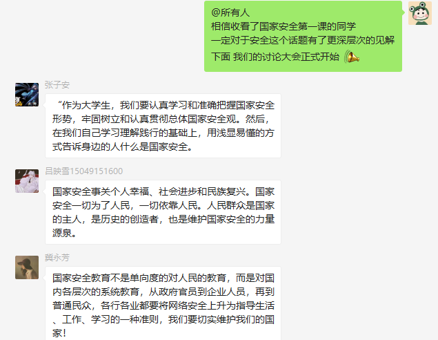 此次班会的开展,不仅让同学们掌握了更多有关国家安全教育的知识,还对同学们的价值观形成以及自身的健康发展起到了积极作用。作为一名中国公民,我们有责任、有义务维护国家安全,作为一名当代老员工,大家更要积极参与到维护国家安全的各项工作中去,尽心尽力维护校园安全,为国家安全的维护贡献自己的一份力量!维护国家安全要从你我做起!