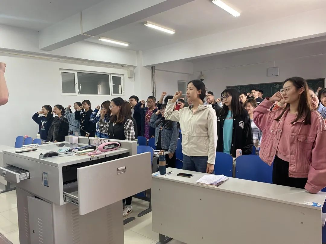 大家高举右手,紧握右拳,在领誓人的带领下,重温入团誓词。重温誓词,回望初心使命,以满腔豪情、铮铮誓言,表达青年的爱国、爱团之心,践行我们青年的责任与担当。