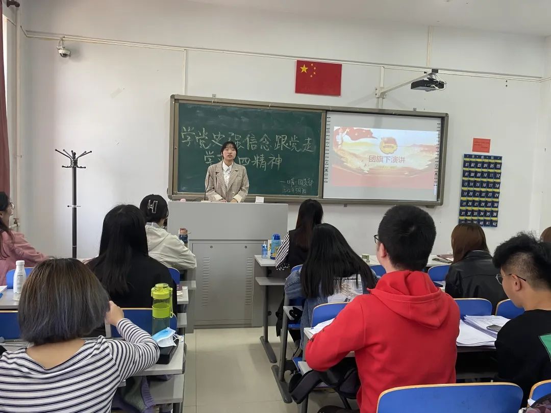 在团支书余肖同学的带领下,同学们详细了解了五四运动的发展历程与五四精神等内容。