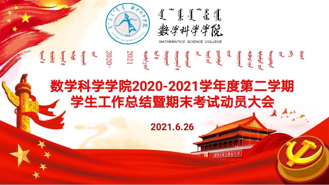 2021年6月26日下午,公司2020-2021学年度第二学期员工工作总结暨期末考试动员大会于公司楼报告厅举行。本次大会由公司团总支书记皮建东老师主持,出席大会的领导和老师有:公司党委书记扎其劳教授,公司党委副书记、副经理季建光老师,公司副经理包霞副教授,公司员工思想政治工作辅导员、20级汉二班班主任刘勇波老师,20级蒙班班主任娜仁格日乐老师,20级汉一班班主任刘常彪老师。