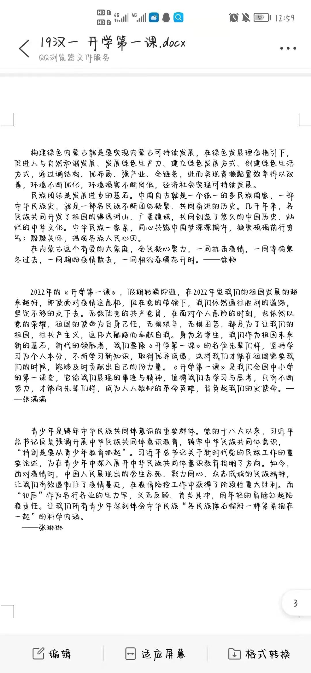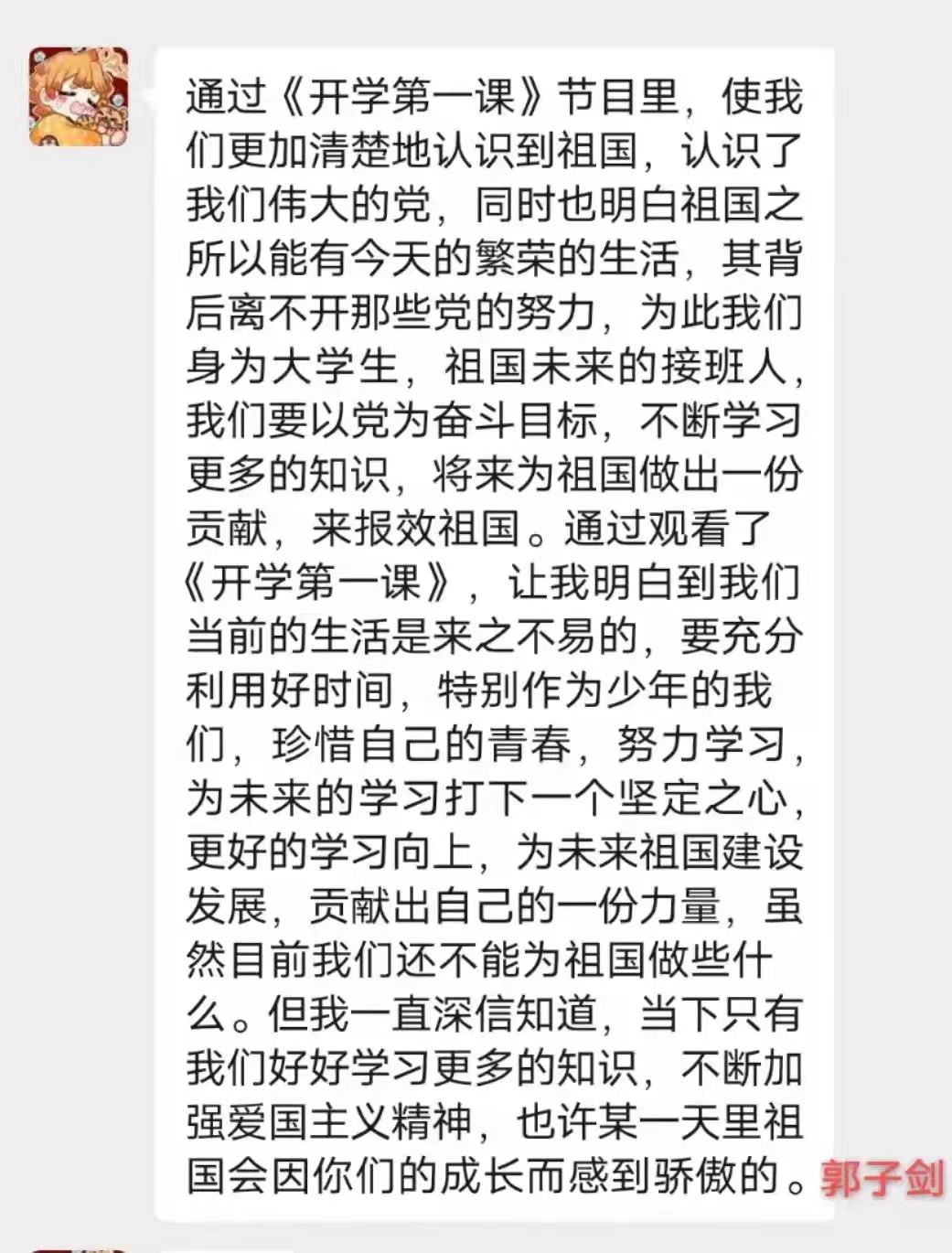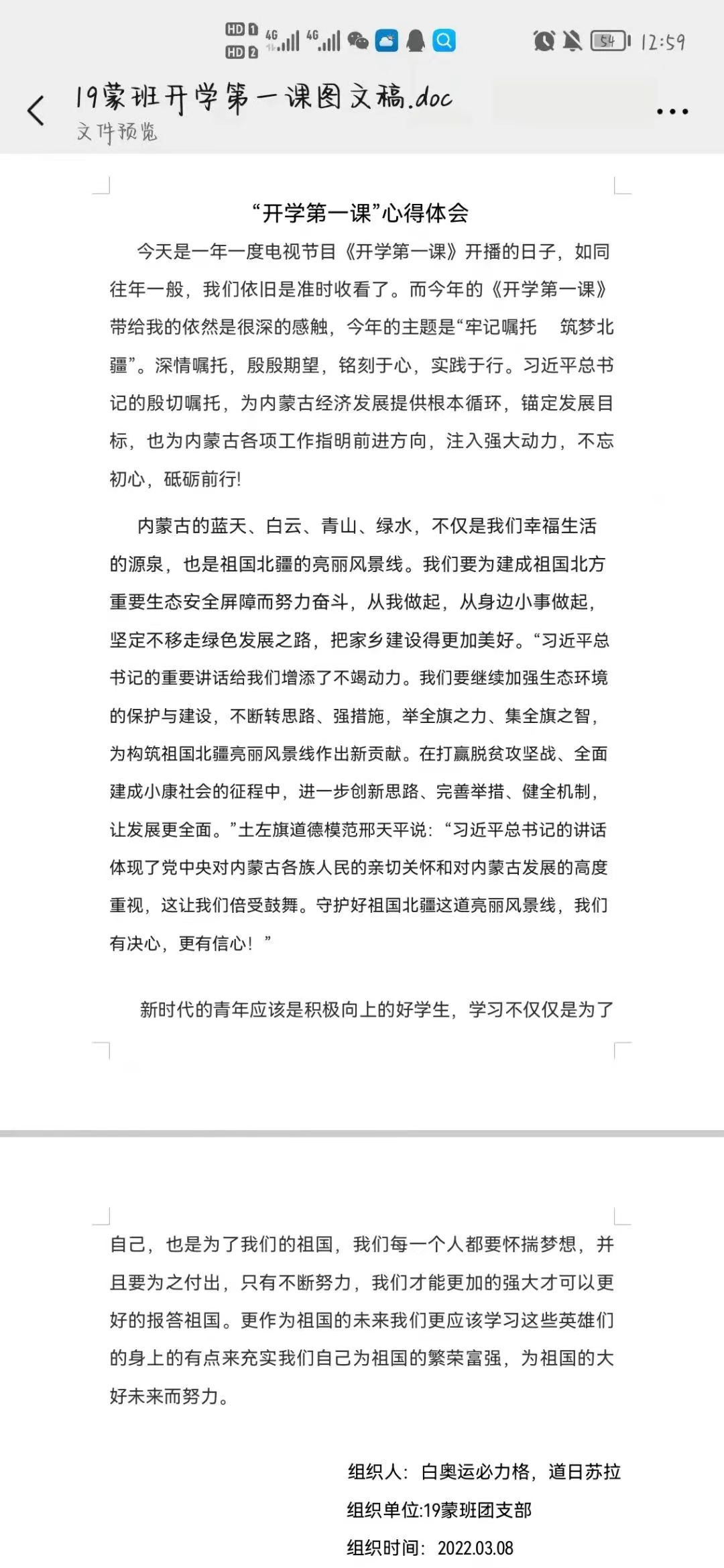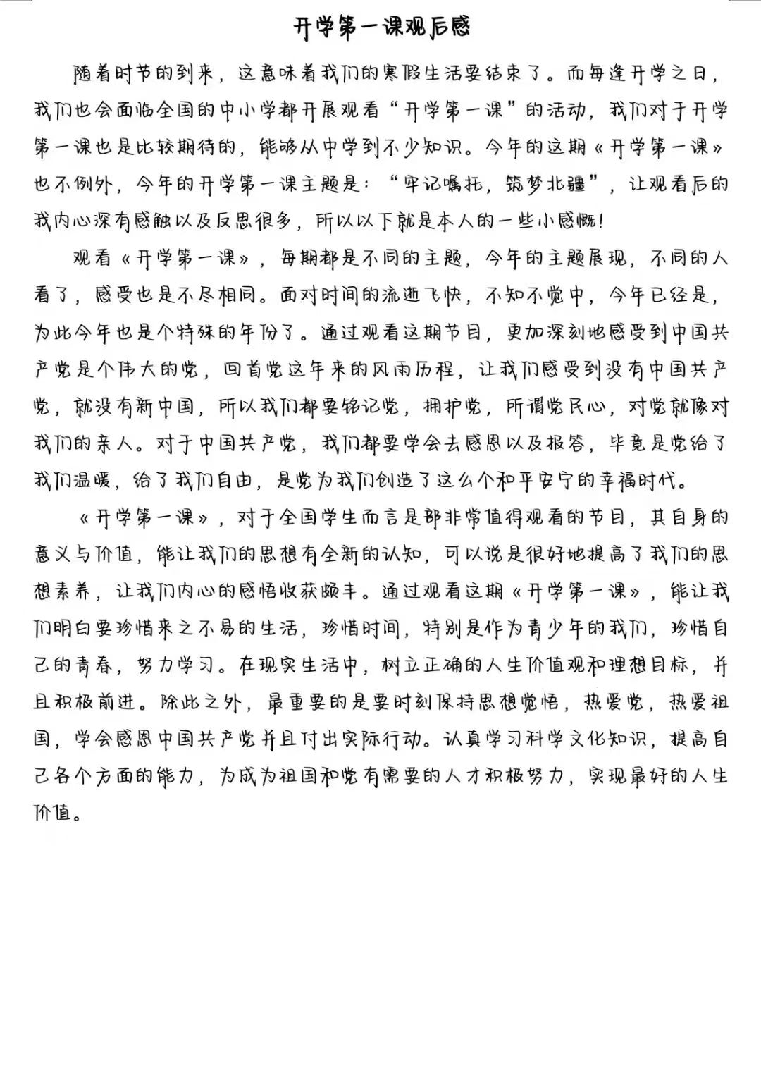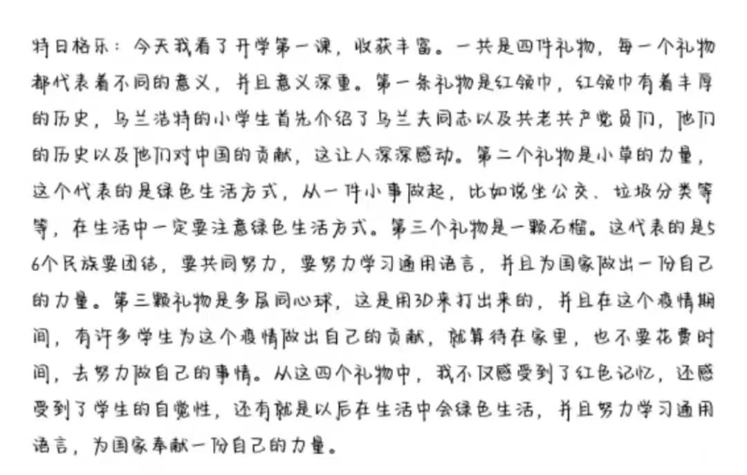 “开学第一课”注重员工引导认真学习、用心感受、深入思考、让党史教育爱国主义教育、民族团结进步教育入脑入心,真正达到启智润心的效果。通过本次观看,希望同学们能够深刻认识“牢记嘱托,筑梦北疆”的内涵与实质,肩负起属于青年人的责任担当以及历史使命,出色完成学业,锻炼自身本领,不断提高内核,努力成为新时代的有力建设者。