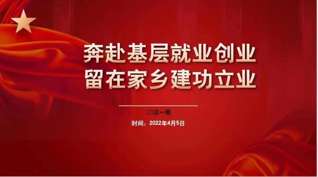响应习近平总书记的号召,开展“奔赴基层就业创业,留在家乡建功立业”的宣传活动: