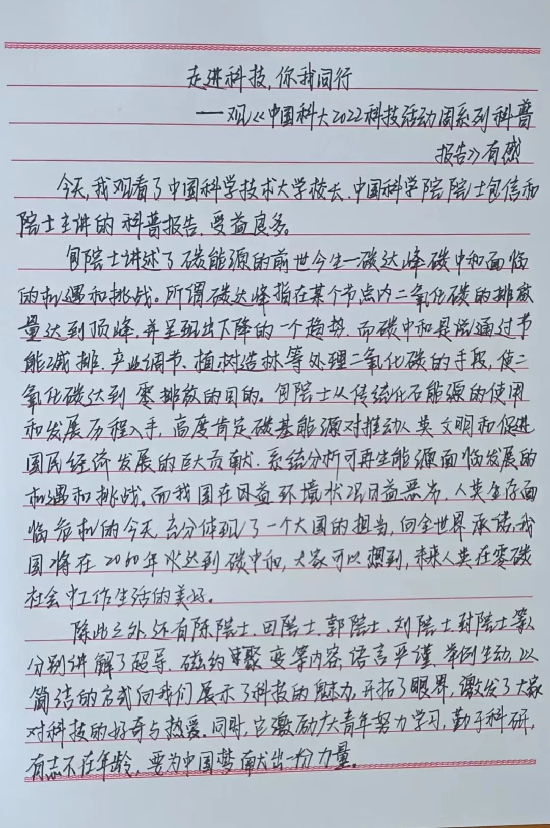 通过本次报告学习,PA电竞师范生丰富了自身的科技知识,也切实了解到科技与我们的生活密切相关、紧密相连。作为新时代的新青年,未来的人民教师,希望他们都能做到崇尚科学精神,树立科学思维,掌握科学方法,以后为祖国培养一代又一代的合格建设者与可靠接班人!