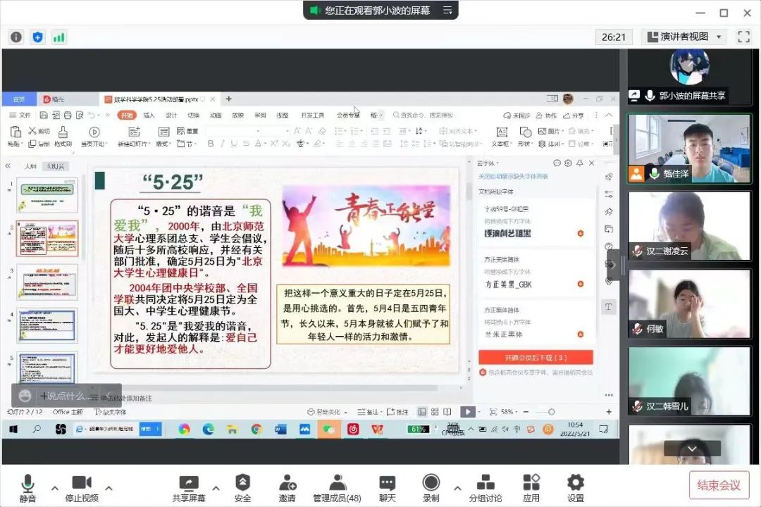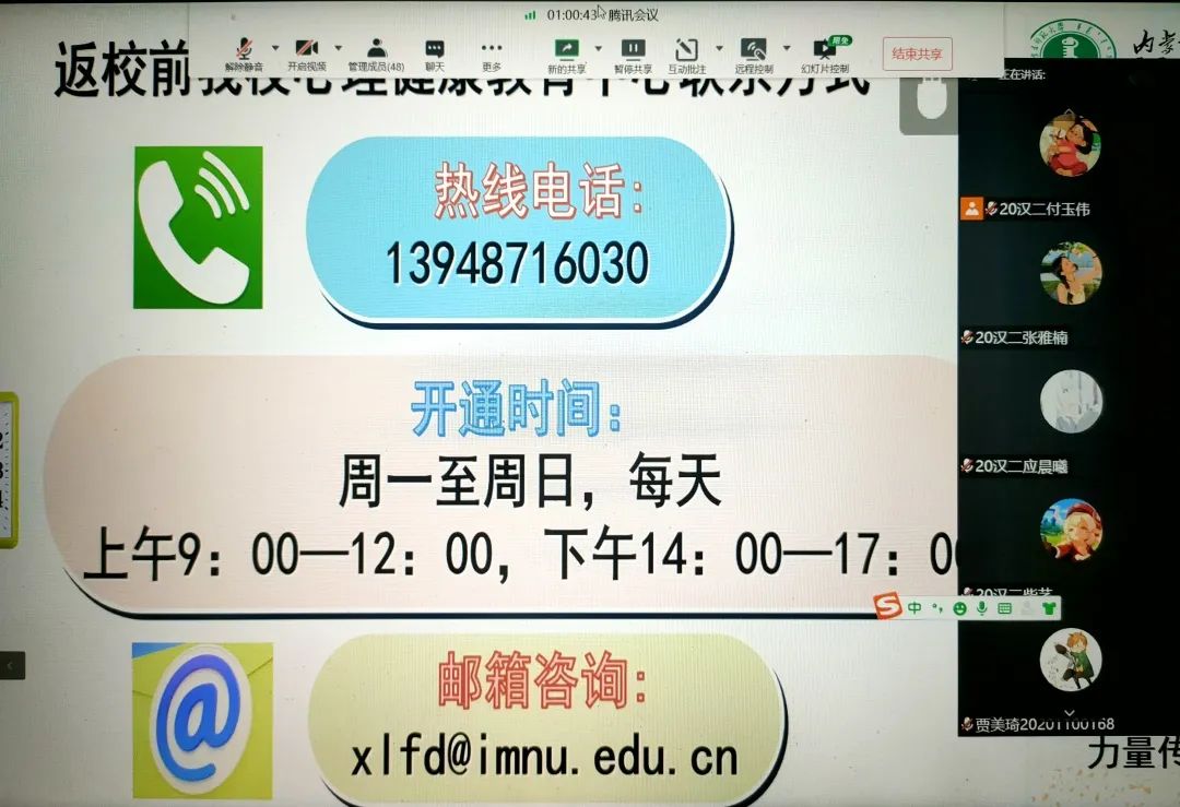 为深入推动老员工心理健康教育,在老员工群体中普及心理健康知识,引导老员工积极主动地关注自身心理健康,促进老员工健康全面发展,公司于5月16日—5月24日召开“润心育人,助力成长”心理健康主题班会,向同学们介绍5.25老员工心理健康日的由来、老员工心理健康的重要性、公司心理健康教育的服务机构以及服务内容、介绍心理健康的重要性等,保障同学们能够度过一个愉快的老员工活。
