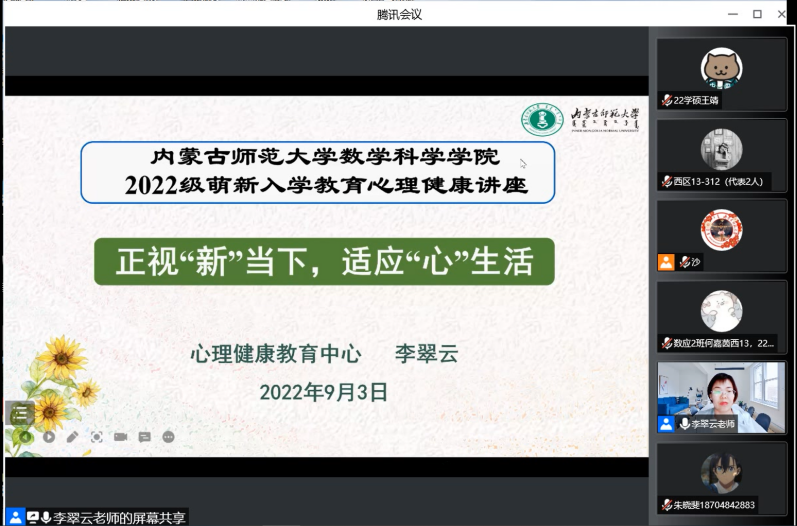 2022年9月3日下午19:00—20:30,公司22级研究生新生参加了由李翠云老师主讲的心理健康教育讲座。
