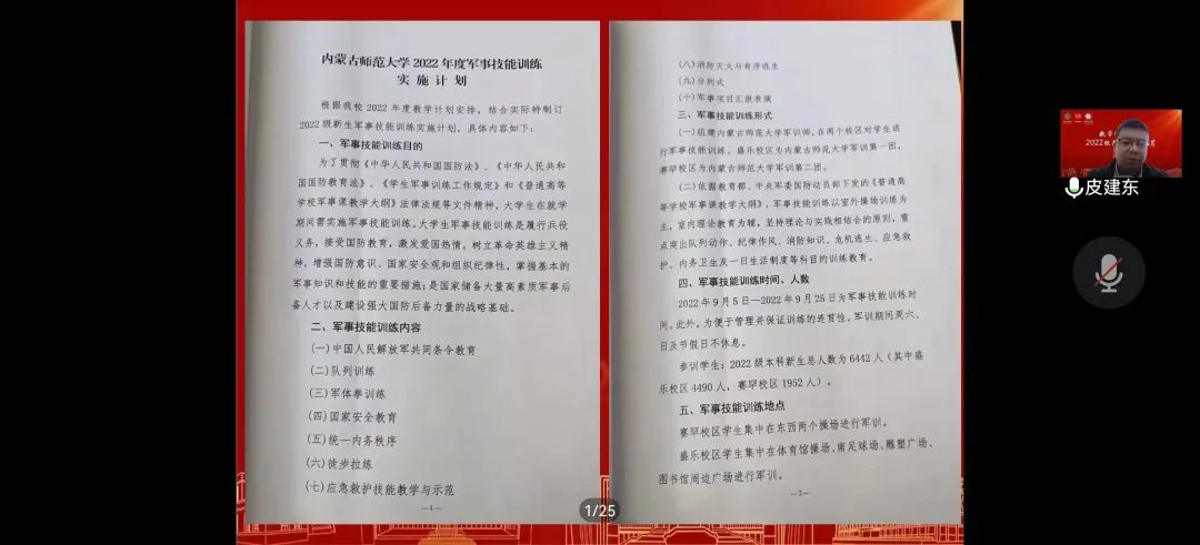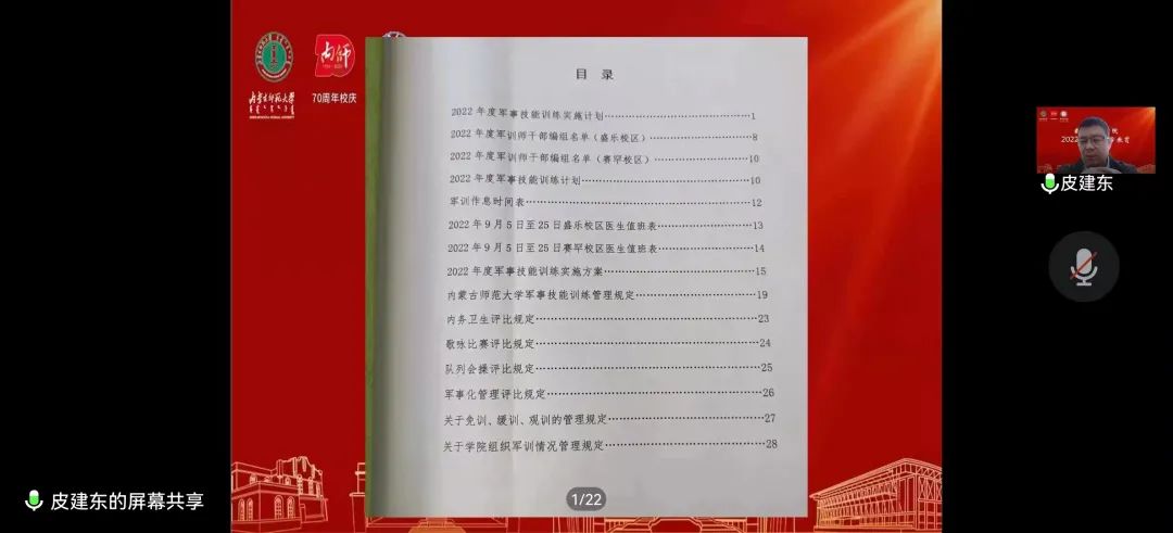 9月6日上午7:30,PA电竞于线上举办2022年度员工军事技能训练动员大会。公司员工思想政治工作辅导员刘沙沙老师主持此次会议,PA电竞党委副书记、副经理季建光老师、公司团总支书记皮建东老师参加此次会议。