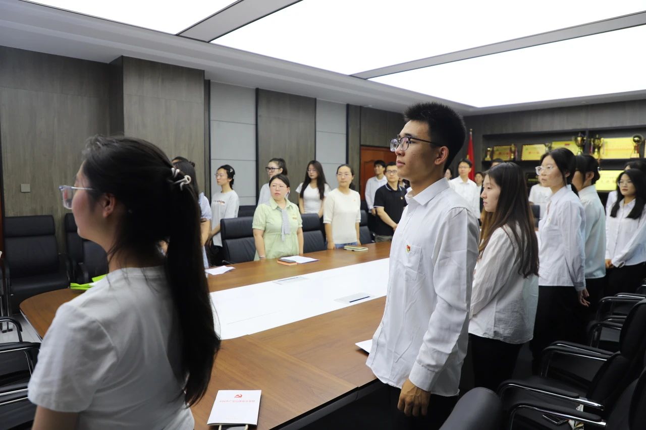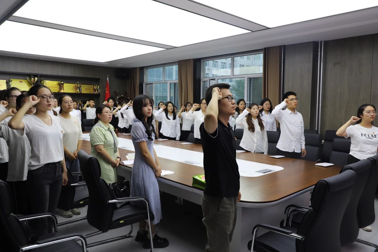 为进一步提升新发展党员的党性修养和党员意识,在7月1日建党节之际,公司各员工党支部联合举行新发展党员入党宣誓仪式,公司各员工党支部书记和全体新发展预备党员参加仪式。仪式由研究生党支部书记萨如拉主持。