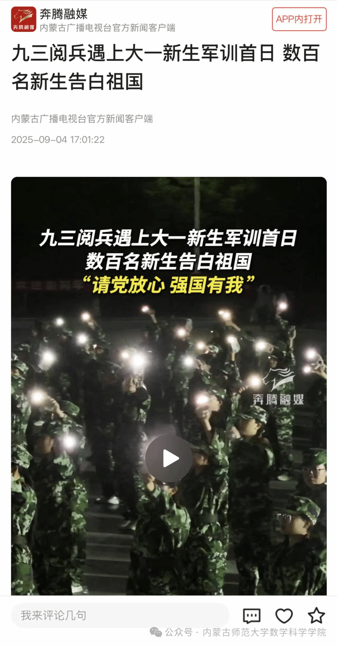 图片说明:内蒙古广播电视台官方新闻客户端发布公司新生用歌声表白祖国