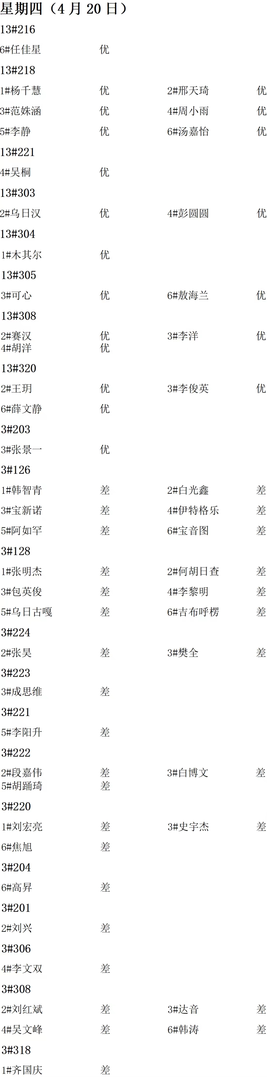 第九周内务情况