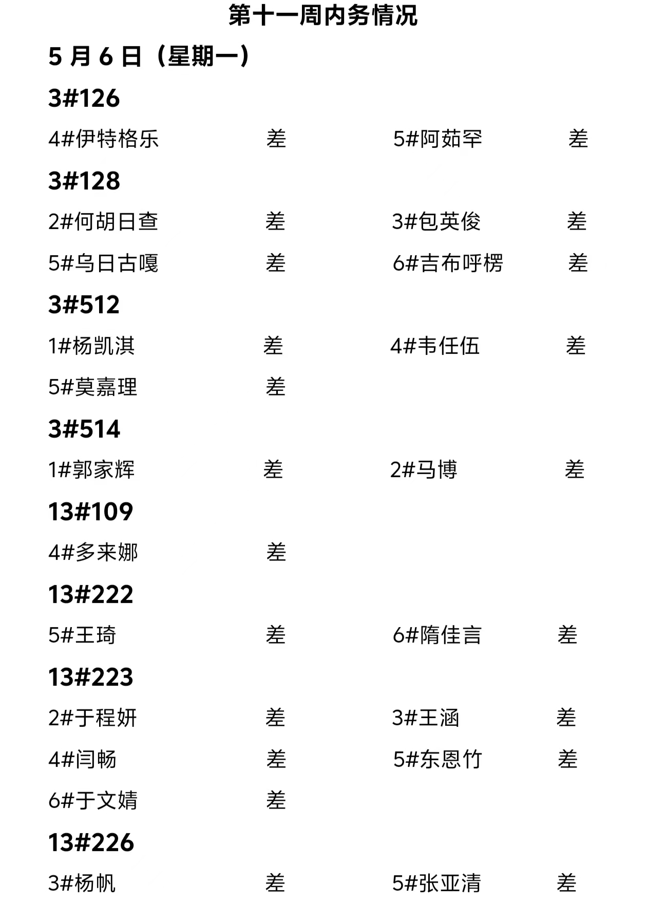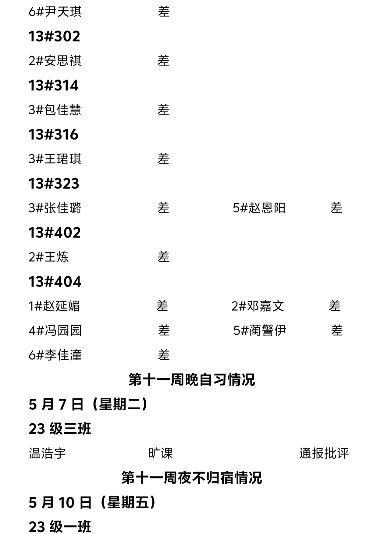 2023——2024年度第二学期第十一周通报情况