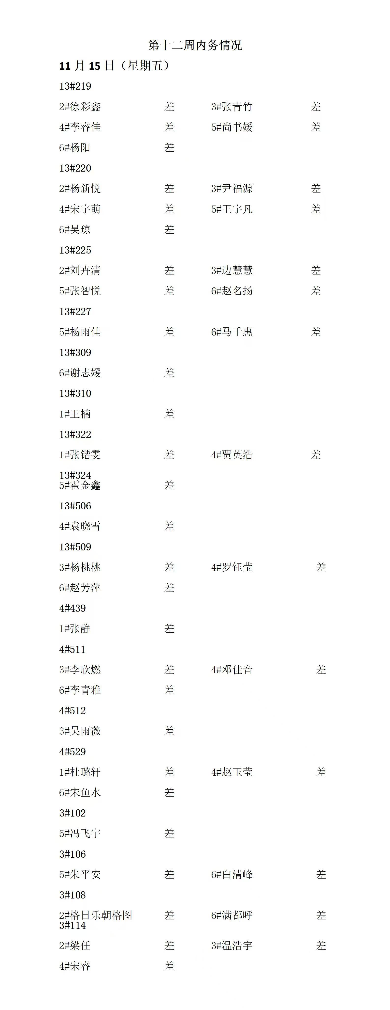 2024——2025年度第一学期第十二周通报情况
