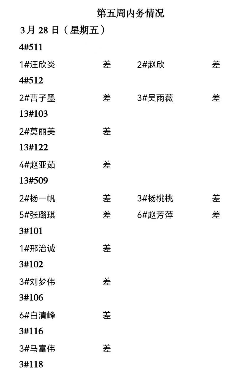 2024——2025年度第二学期第五周通报情况