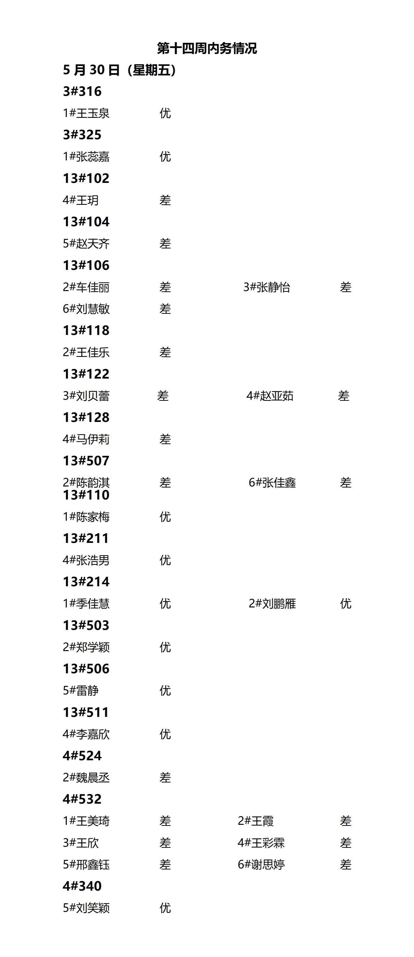 2024——2025年度第二学期第十四周通报情况