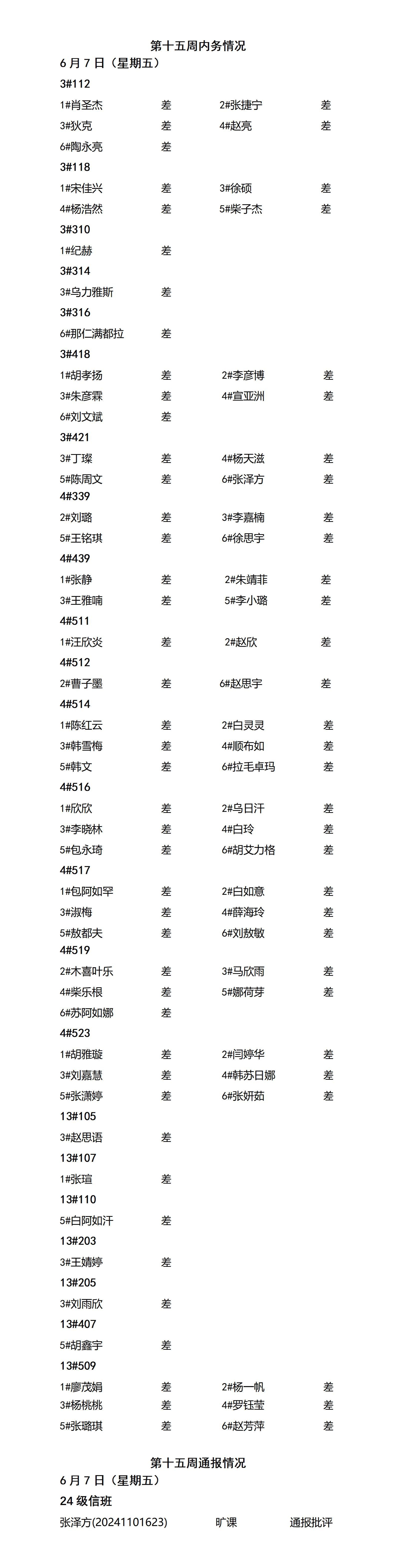 2024——2025年度第二学期第十五周通报情况