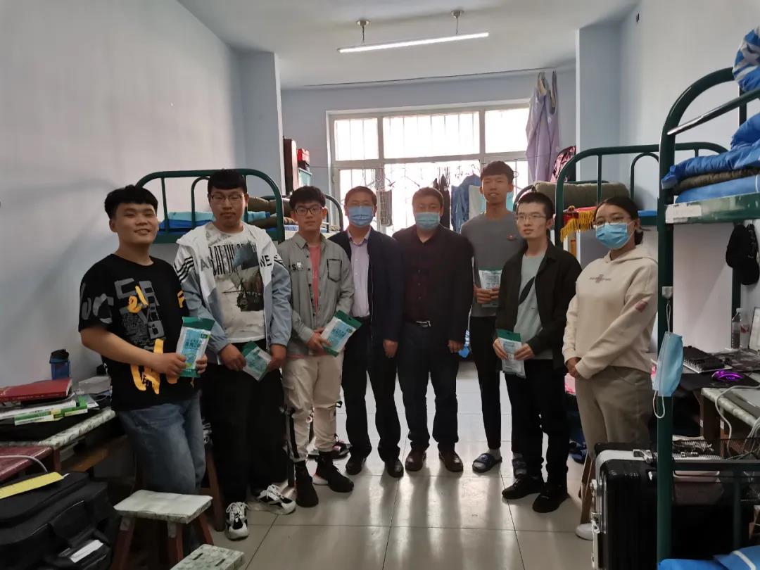 公司党委书记扎其劳教授、党委副书记、副经理季建光老师来到员工宿舍亲切询问员工情况,帮助同学们办理各项手续,搬行李,整理书包,给同学们分发口罩、教材。详细了解员工在家线上学习情况,悉心询问大家的返校生活是否存在困难,并嘱咐同学们有困难随时联系公司辅导员、领导。