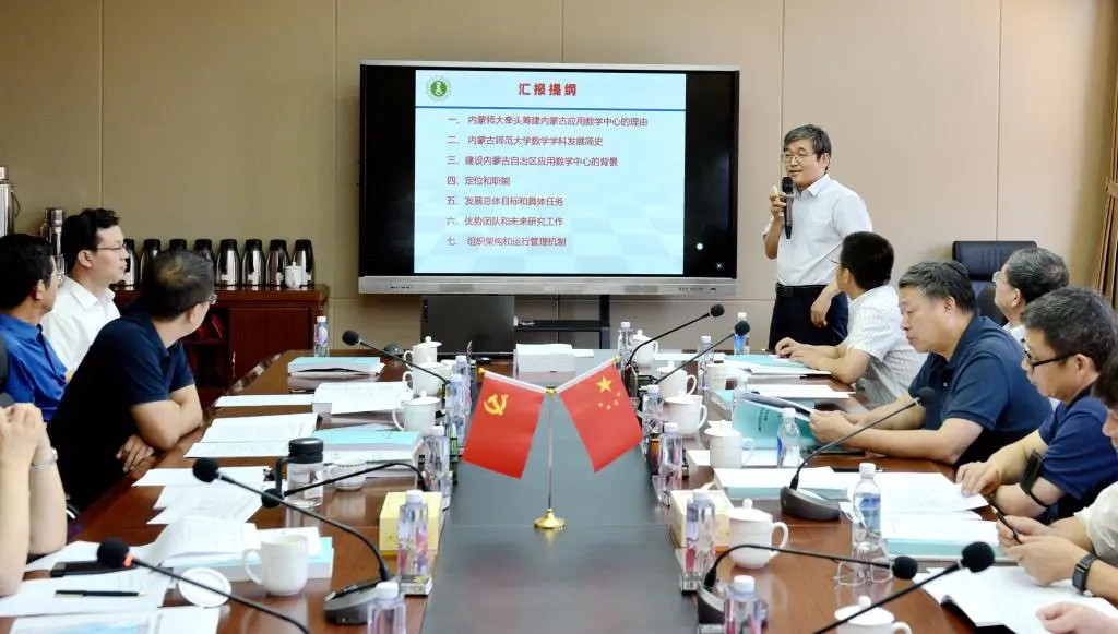专家组论证会上,pa电子应用数学中心负责人、公司党委书记阿拉坦仓从筹建内蒙古自治区应用数学中心理由、建设背景、定位和职能、发展总目标和具体任务、优势团队等方面作了详细汇报。专家组就中心成立的条件等情况进行了评定。会议由专家组组长李若主持。