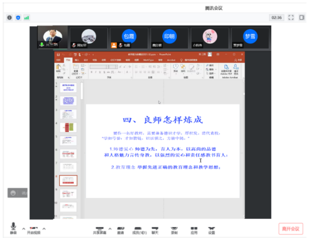 2022年4月20日19:00—21:00PA电竞在线开展“国家一流专业建设、虚拟教研室建设、内蒙古应用数学中心”系列讲座。本次特邀请国家教学名师、西安电子科技大学刘三阳教授作主题为“教学能力纵横谈”的报告。报告由包霞副经理主持,经理扎其劳教授、党委书记李联和教授、副书记季建光老师及公司全体教师和慕名而来的其他院校部分教师聆听了本次报告。