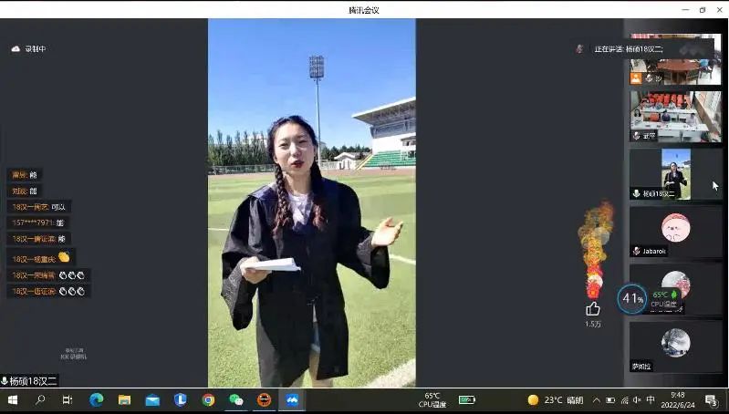 【本科生代表杨硕在操场】
