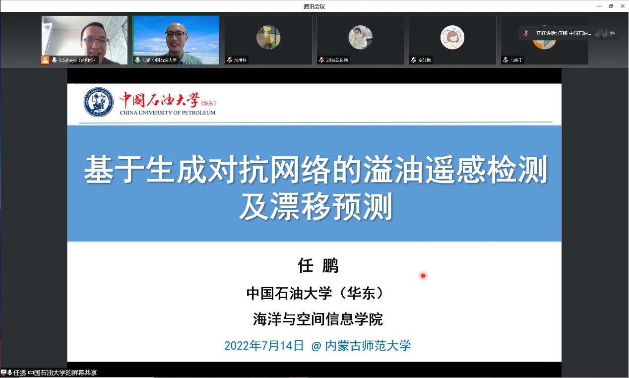 2022年7月14日上午8:30-10:00,PA电竞以线上会议的形式举办了迎校庆70周年暨内蒙古自治区应用数学中心系列讲座。特邀请中国石油大学(华东)教授,博士生导师,青岛市“海洋灾害预防检测信息国际联合研究中心”主任任鹏作了题目为“基于生成对抗网络的溢油遥感检测及漂移预测研究”的报告。本次讲座由高性能计算中心主任萨和雅主持,相关方向的教师、研究生和本科生听了本次报告。