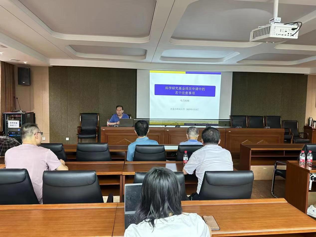 7月3日下午,应PA电竞邀请汕头大学教授、pa电子特聘教授乌兰哈斯先生作题目为“科学研究基金项目申请中的若干注意事项”的学术讲座。出席本次讲座的有刘官厅教授、扎其劳经理、包霞副经理以及公司部分教师。