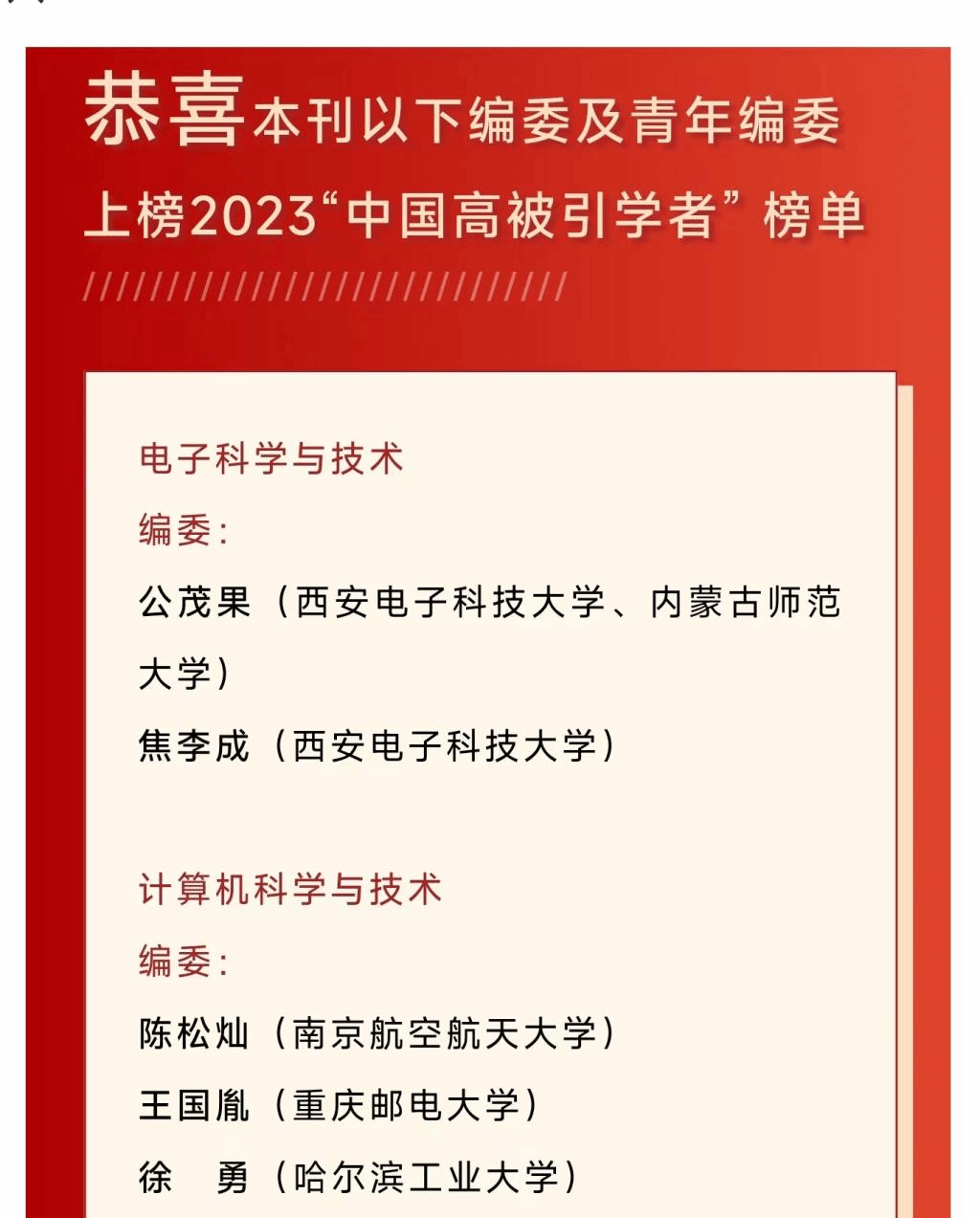 2023“中国高被引学者”上榜共计5801人,来自496所高校、企业及科研机构,覆盖了教育部10个学科领域、84个一级学科。pa电子副董事长公茂果教授上磅2023“中国高被引学者”榜单。