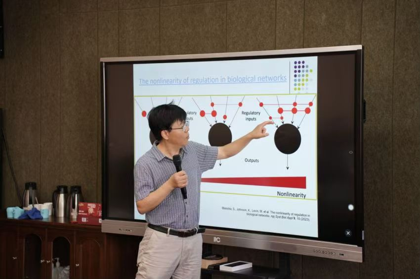 会议期间,邬荣领研究员、吴杰研究员、曹达啟副教授和博士后、博士生们分别作了精彩的报告。邬荣领研究员的报告《人工智能的统计基础》深入探讨了大数据统计建模和复杂系统统计物理的前沿问题,为与会者提供了宝贵的学术视角。吴杰研究员的报告《人工智能视角下的代数拓扑学》则从数学的角度,展示了人工智能与数学交叉融合的广阔前景。曹达啟副教授的报告《数智时代之水环境研究的机遇与挑战》聚焦于环境保护,提出了利用高端数学知识赋能环境复杂系统研究的新思路。
