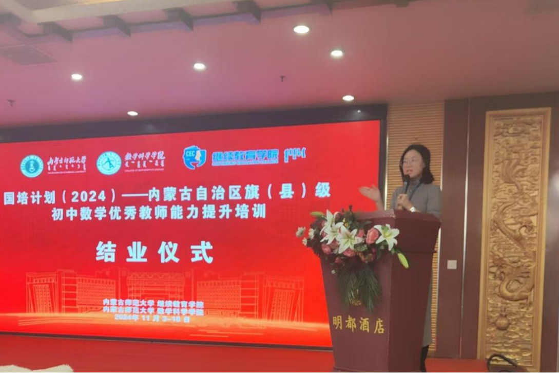2024年11月15日,“国培计划(2024)——内蒙古自治区旗(县)级初中数学优秀教师能力提升”培训在山东省淄博市圆满落幕。本次培训由pa电子继续教育公司主办、PA电竞承办,学员是来自全区各盟市选派来的50位旗(县)级初中数学优秀教师,旨在为各盟市教科研质量的提高注入新动力。培训为期两周:在pa电子集中研修1周,在山东省淄博高新区实验中学跟岗实践1周。培训班班主任及全体培训学员出席了结业仪式,仪式由郑佳璇老师主持。