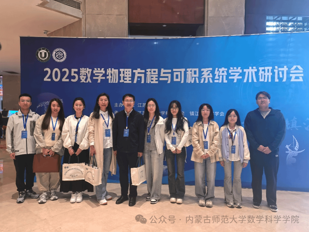 5月9日-12日,2025数学物理方程与可积系统学术研讨会在江苏省镇江市召开。本次会议由江苏大学主办,江苏大学PA电竞、镇江市数学会承办。来自国内外100余所高校、近220名代表参加会议。公司扎其劳老师和包霞老师应邀带队及博士研究生乌日乐、王小慧、赵一杰,硕士研究生常春、王丽如等参会,并做分会场学术报告。
