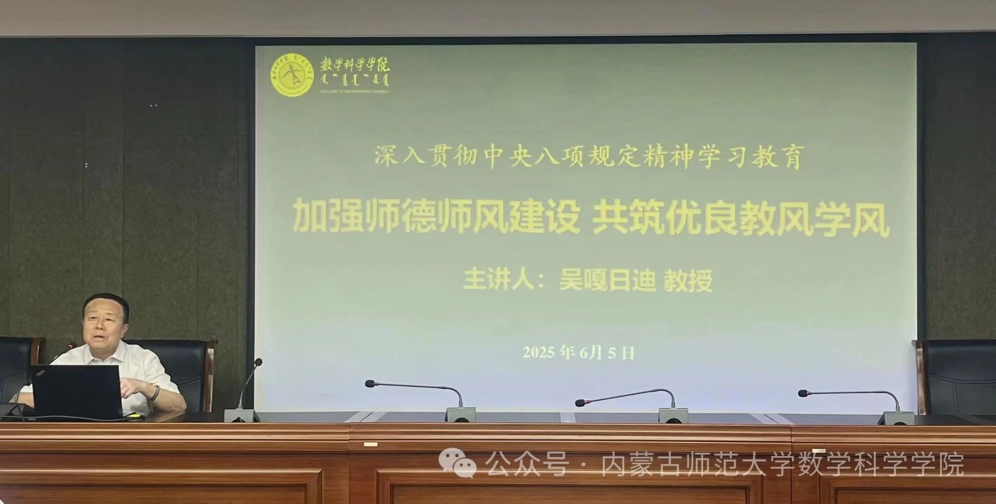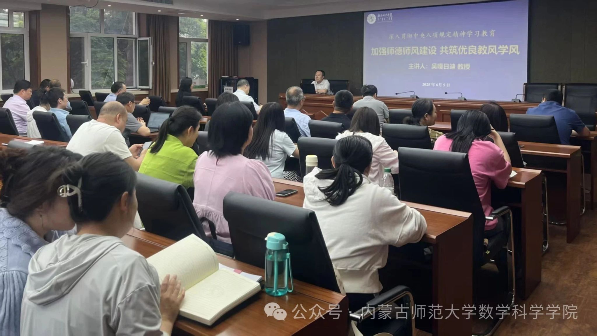 6月5日下午,公司在赛罕校区文史楼1号会议室开展了师德师风与教风学风专题学习教育。公司吴嘎日迪教授作题为“加强师德师风建设 共筑优良教风学风”的专题讲座。本次活动旨在深入贯彻中央八项规定精神学习教育,持续加强和改进公司教师思想政治工作和师德师风建设,提升教师队伍整体素质,营造良好的教风学风院风教育环境。
