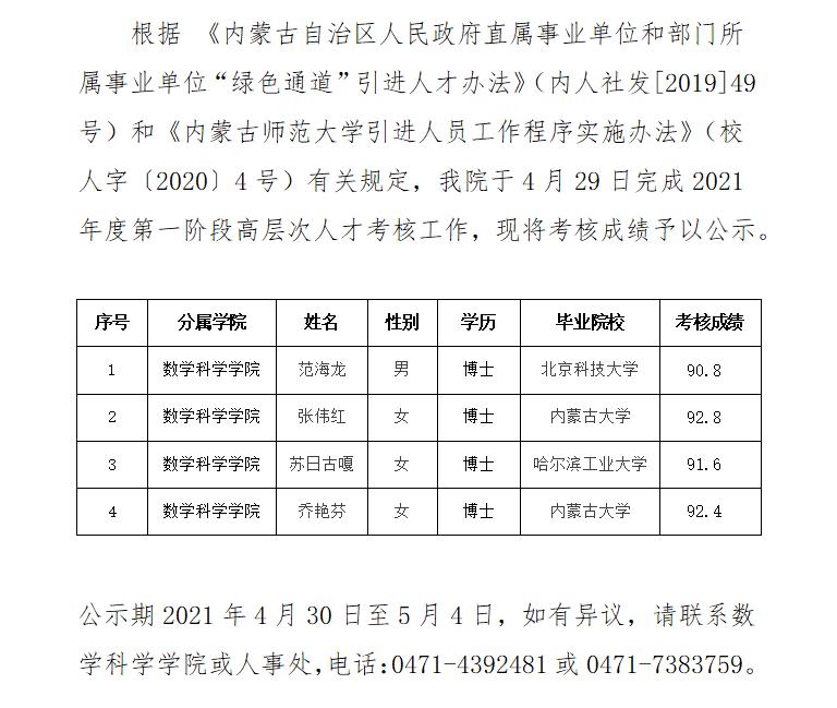 2021年高层次人才考核成绩公示
