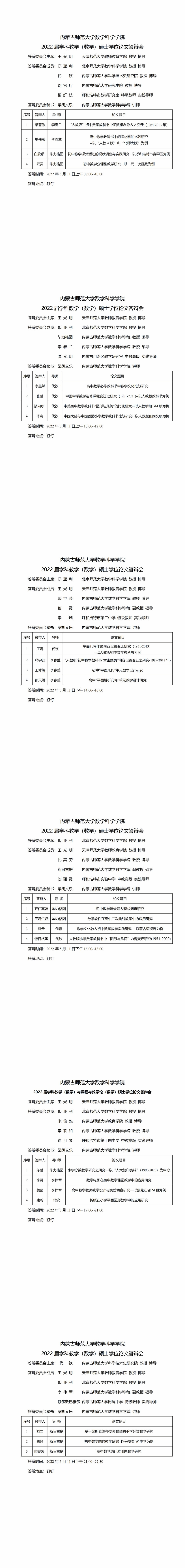 2022届数学教育方向研究生答辩会安排表