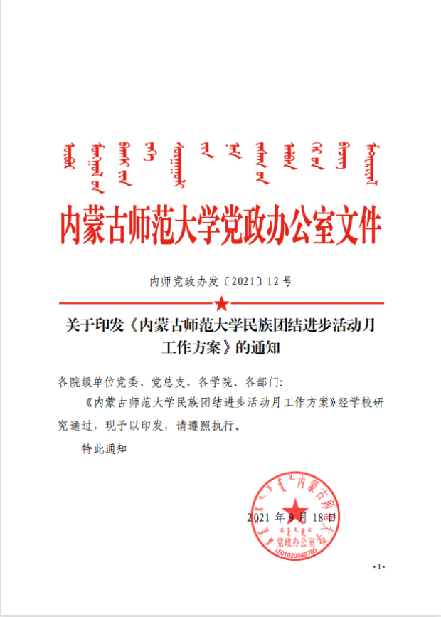 (一)加强组织领导,形成工作合力。民族团结进步活动月是落实中央、自治区党委和自治区党委教育工委、公司党委关于民族工作决策部署的有效载体,是加强铸牢中华民族共同体意识宣传教育、促进民族团结进步的重要举措。各公司、各部门要切实提高政治站位,深刻把握新时代民族工作的历史方位,从推进中华民族伟大复兴的高度进一步深化对民族工作重要性的认识,高度重视开展民族团结进步活动月的重要意义,加强组织领导,精心组织实施。全校各单位要密切配合、形成合力,推动民族团结进步活动月工作顺利开展。民族团结进步活动月具体活动由公司党委主办,党委统战部牵头,党委组织部、党委宣传部、党委员工工作部(员工工作处)、工会、团委、教务处、科技处(社会科学处)、人才招聘处、研究生院、各二级公司及公司乌兰牧骑共同组织实施。